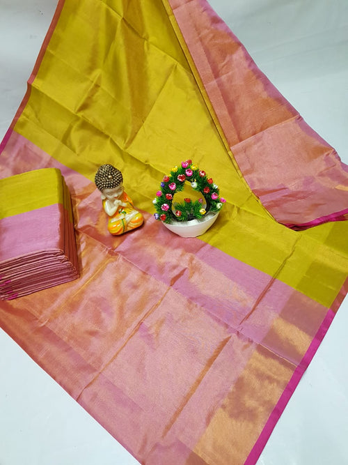 Baby Pink Uppada Tissue Saree with Yellow Pallu